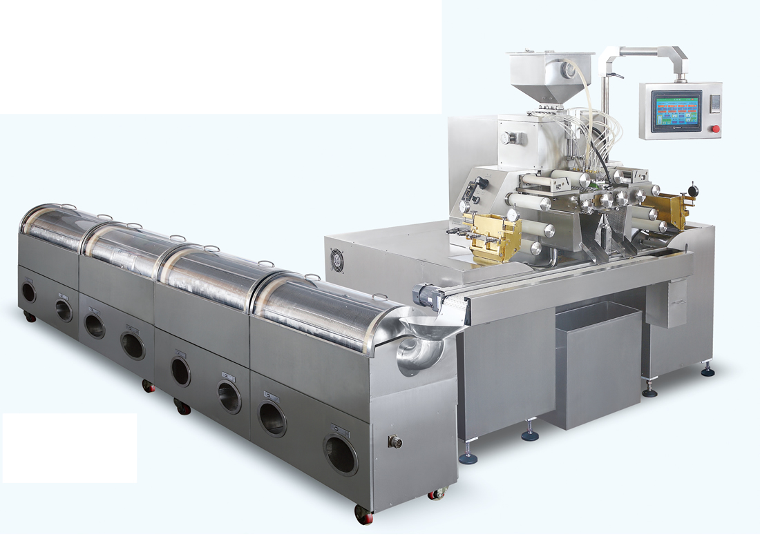 软胶丸机可将油类液体、混悬液或糊状物定量注入胶膜中,形成大小、形状、色彩各异的密封软胶丸。由于软胶丸具有崩解速度快、生物利用率高、外形雅致、
